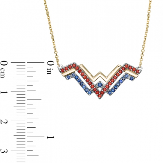 With stunning color, this distinctive gemstone necklace from delivers valiant design. Fashioned in sterling silver and warm 10K gold, this dynamic choice showcases the "WW" logo in eye-catching silver rows of regal red garnets and bright blue sapphires. A sculpted ribbon in polished yellow gold completes this classic symbol. Buffed to a brilliant luster, this look suspends centered along an 18.0-inch cable chain that secures with a spring-ring clasp. This exclusive fine jewelry collection inspires you to wear your strength, confidence and power.