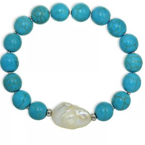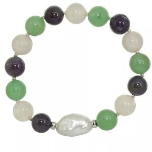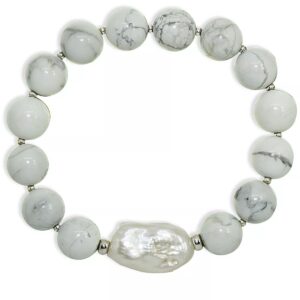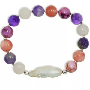 Genuine Stone Bead Biwa Pearl Stretch Bracelet